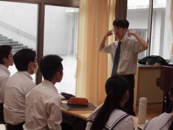 • 9/19に催される新人大会壮行会に向けて、9年生の応援団員が7年生の教室に来て、帰りの会の時間に合同練習を行いました。9年生の気迫に圧倒されていた7年生たちでしたが、本番では一緒に熱い応援ができることを期待しています