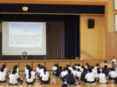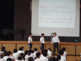 7年生対象に、スクールサポーターの福山さんが薬物に関する指導をしてくださいました。