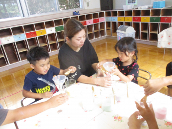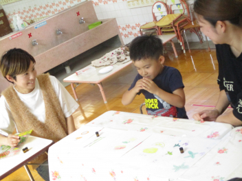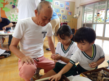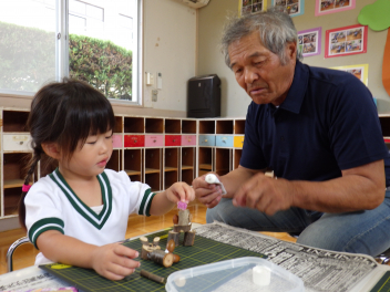 おじいちゃんが、来てくださって、子供たちと ‵ゆったりじっくり’ とかかわっていただきました
