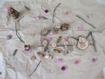 いろいろな木の枝を細かく切ったものを使って、組み合わせていきます。