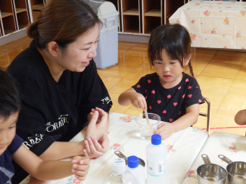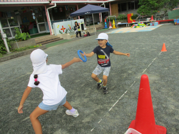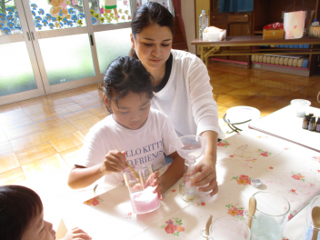 幼稚園で遊んでいることについて尋ねてくれたり、レストランのお客さんにもなったりしてくださいました。