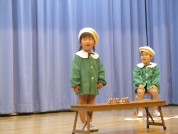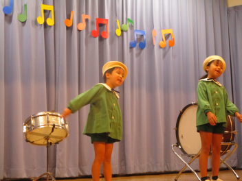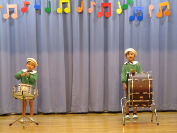 年長さんは、きれいな声で「てのひらを太陽に」を歌って「おばけなんてないさ」を歌って、太鼓を演奏します。