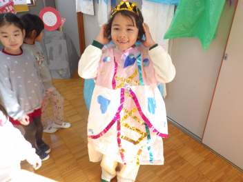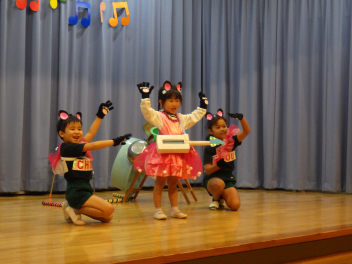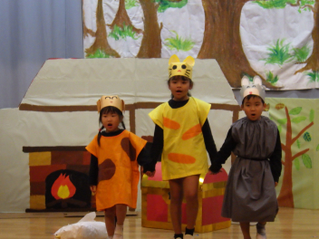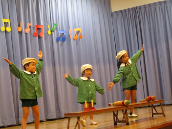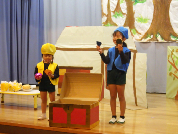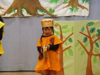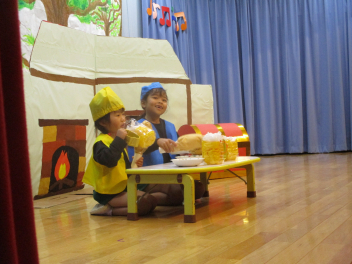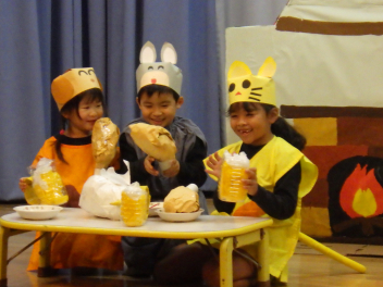 劇遊びでは、3人で「ブレーメンの音楽隊」に挑戦です。