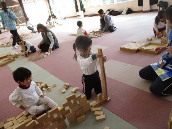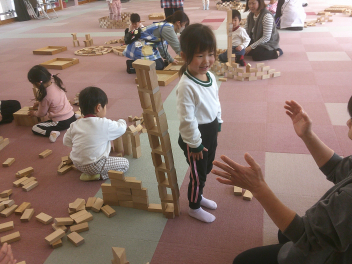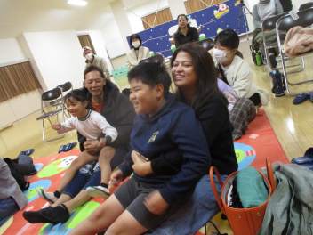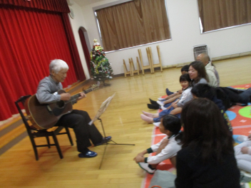 みんなで遊ぼうのコーナーでは、ギターおじさんと歌ったり、お家の方と触れ合ったりしました。