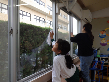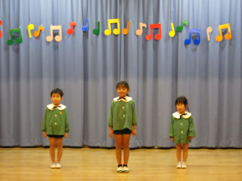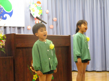 年少さんが歌っている時には、年長さんが後ろで一緒に歌って応援します。