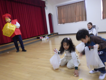 年少さんは、自分でお気に入りのダイコンを見つけて ‵うんとこしょ どっこいしょ’ と引っ張っていました。