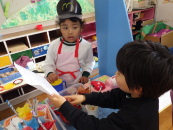 年少さんは、お兄さん、お姉さんの姿を見て、やりたくなってしまうようです。