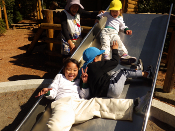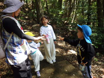 年少さんと一緒に好きな楽器を持って、「公園へいきましょう」