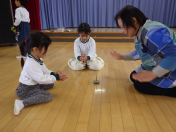 「トナカイのクリスマス」は、真ん中でトナカイの子が、鈴を持ってスキップをして座っている子に鈴を渡します。すると渡された子がトナカイに変わります。