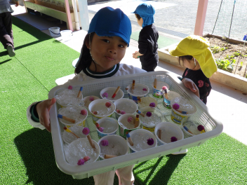 最後は、年長さんが「いっせ~の~でっ!」と投げ入れてくれました。