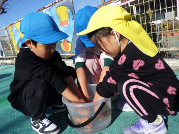 • 12日(水)に、幼稚園で収穫したサツマイモで、焼き芋パーティーを行いました伊目と西気賀幼稚園のお友達に来てもらい、3園交流です。
