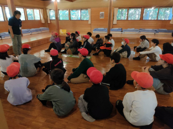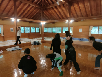 入所式、入室オリエンテーションを終え、午前中はネイチャーゲームを行います。