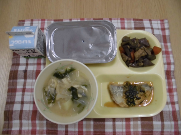 今日の給食は、春を感じさせてくれる「たけのこごはん」です。たけのこは、地面に顔を出してから十日間までを、「たけのこ」と呼びます。それを過ぎると皮がむけて、竹と呼ばれるようになります。たけのこは灰汁が強く、「えぐみ」という苦みがあります。そのえぐみをとるために、給食室では、前の日に、たけのこを米ぬかと一緒にゆでて皮をむき、準備しました。
