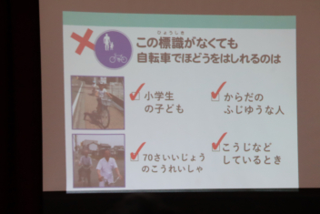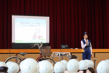 今日は、交通安全教室があり、交通安全指導員の方々から正しい交通ルールやマナーについてのお話を聞きました。