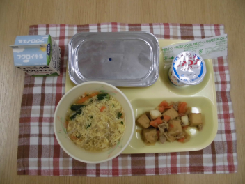 生揚げは、しっかり水を切った豆腐を高温の油で揚げて作ります。表面はしっかりと揚がっていますが、中は豆腐の食感を残したまま揚げるため、「生揚げ」という名前がついたと言われています。「揚げる」という調理方法は、室町時代に中国から伝わり、その頃から油揚げや厚揚げを食べるようになったそうです。今日はごはんが進むように、生揚げを甘辛いみそで味つけしました。