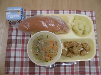 ジュリエンヌとは、フランス料理の切り方の種類で、「せん切り」のことを言います。せん切りとは、線のように細く長く切る切り方です。今日は、キャベツ・にんじん・たまねぎ・セロリなどの野菜をせん切りにして、「ジュリエンヌスープ」にしました。野菜がたっぷりとれます。