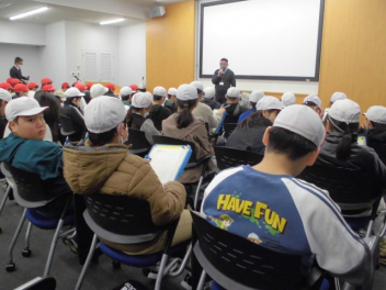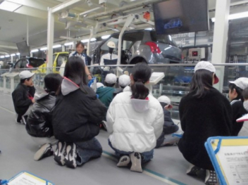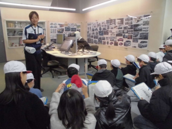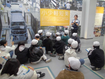 歴史館では、自動車の歴史や完成するまでの流れなどを映像を見たり、職員の方の話を聞いたりして学習しました。