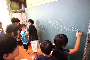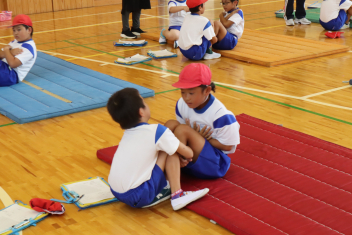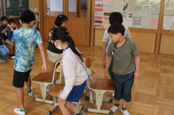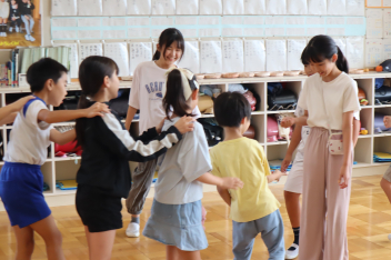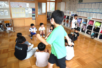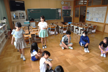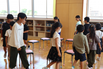教室では、ハンカチ落としや島がしずんだ、貨物列車、椅子取りゲームなどの遊びを楽しんでいました。