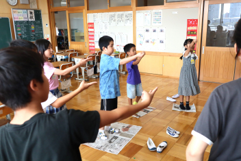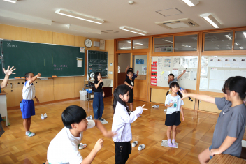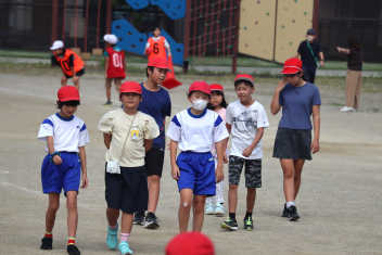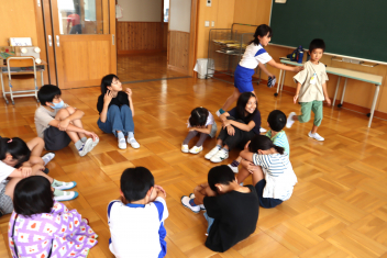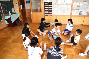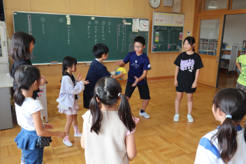 縦割りのグループで6年生が遊びを考え、異学年交流をしています。