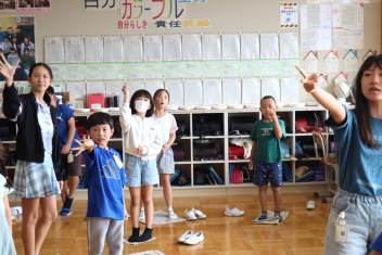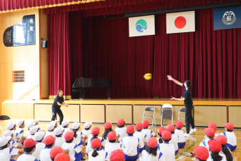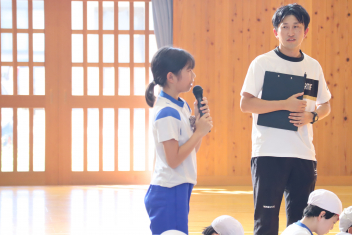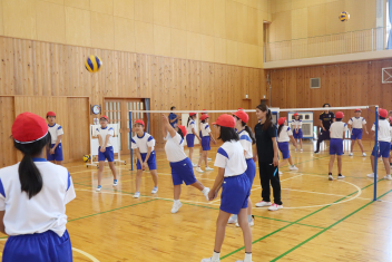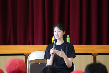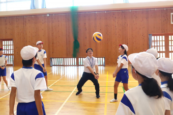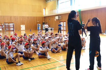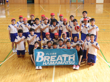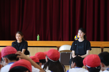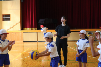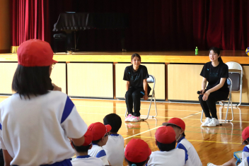 • 6年生の総合学習のキャリア教育として、ブレス浜松の元選手西行米さんと森木かれんさんが船越小にいらしてくださいました。