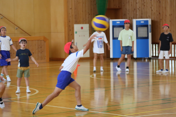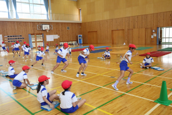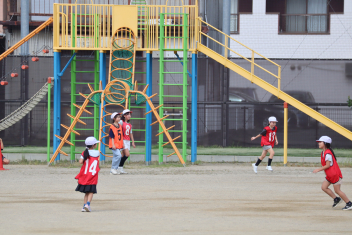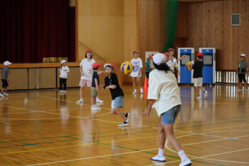 体育館では、ドッジボール、運動場では、鬼ごっこなどの遊びが行われていました。