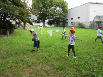 生活科「むしをさがそう」の学習で、近くの八柱公園に行って、虫捕りをしました。