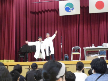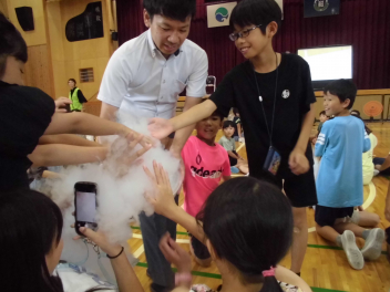たくさんの児童や保護者の皆さんが参加され、クイズで盛り上がったり、実験に驚いたりしました。