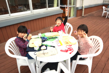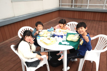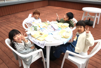 前回は、雨で延期していたため、念願のテラス給食でしたindecision