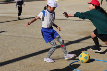 体育館では、「ドッジビー」、「王様ドッジ」が行われ、校庭では、「ケイドロ」、「バナナ鬼」などの遊びを楽しんでいました