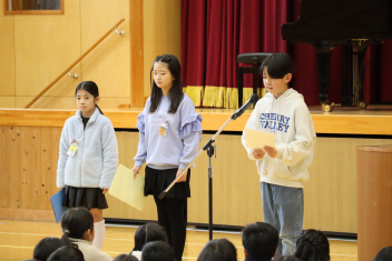 始業式では、全校で校歌を歌い、代表の児童が3学期の決意を上手に発表してくれました。