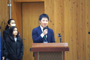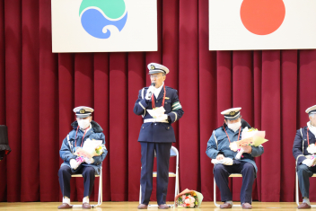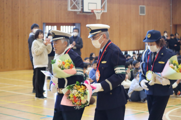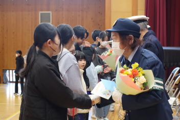 •  今日の朝、体育館で「交通指導隊に感謝する会」が開かれました。