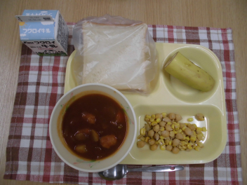 今日のデザートはバナナです。バナナは、炭水化物やたんぱく質、ビタミン、ミネラル、食物繊維などの栄養素がバランスよく含まれている優れた果物です。育ち盛りのみなさんに不足しがちな栄養が豊富に含まれている食べものです。皮がむきやすく、すぐに食べることができます。朝ごはんやおやつに取り入れるといいですね。