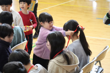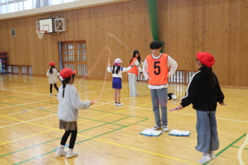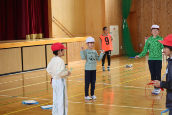 「脇を締めて回すといいよ」「ジャンプのタイミングは今!」 下級生の目線に合わせて腰をかがめ、優しくアドバイスを送る高学年の姿は、いつにも増して頼もしく見えました。教わった下級生が初めて「あや跳び」に成功したときには、自分のことのように手を叩いて喜ぶ上級生の姿もあり、学年を超えた絆が深まった素敵なひとときとなりました