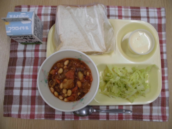 今日は富士山の形をした富士山コロッケです。副菜のコールスローには、キャベツが使われます。この時期のキャベツは、寒さで凍らないように、葉っぱの中に甘い成分をため込みます。そのため、とても甘くておいしいキャベツになります。また、キャベツにはビタミンCが豊富で、風邪に負けない強い体を作るのを助ける働きがあります。そして粘膜を丈夫にして、胃を守ってくれる働きもあります。
