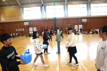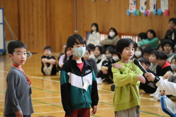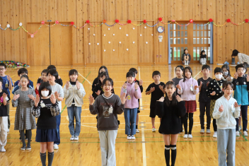 歌やクイズ、なわとび対決、ダンス、プレゼントなどを通して6年生に感謝の気持ちを伝えました
