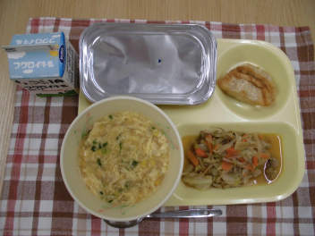 10月は気候が良く、体を動かすと気持ちがよい季節ですね。心も体も健康に過ごすためには、栄養バランスのよい食事をとり、骨や筋肉を丈夫にするために運動をして、夜には体を休めるためにしっかり寝ることが大切です。今日の鶏肉と野菜の中華炒めには、たくさんの野菜が入っています。野菜には体の調子を整える働きがあります。食事・運動・睡眠をしっかりとって、健康な体をつくりましょう。