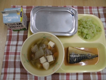 さばには、脳の働きを活発にすると言われているDHAが含まれています。また、体をつくるもとになるたんぱく質や、体の中でエネルギーを作るときに必要なビタミンB2、貧血の予防に役立つ鉄分など、みなさんの成長に欠かせない栄養が多く含まれています。今日は給食室の大きなお釜で、さばをじっくり煮ました。みそを入れて煮ることでさばの身を柔らかくし、おいしく食べることができます。