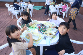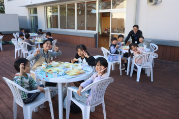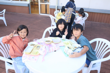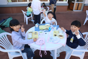 昨日と今日は、2年生のテラス給食の日でしたwink