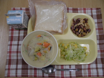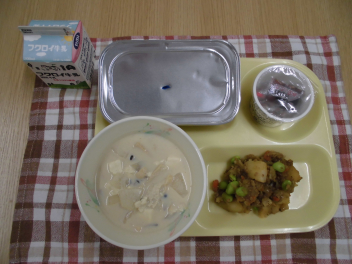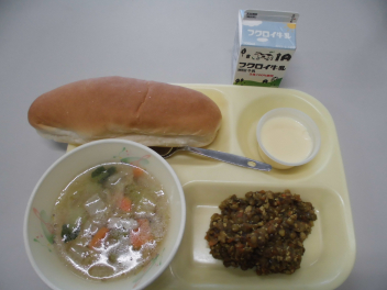 今日は3年生の国語の教科書にのっている「すがたをかえる大豆」にちなんだ献立です。すがたをかえた大豆がいくつ隠れているかわかりますか?答えは・・・
