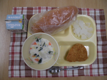 給食週間5日目です。献立テーマは、「野菜を食べよう」です。だいこんのレモンマリネにはだいこん、冬野菜のミルクスープには、はくさい、かぶ、ほうれんそうなどの冬が旬の野菜が使われています。冬野菜は寒さの中で甘みが増し、皮膚やのどなどの粘膜を丈夫にするビタミンAや、寒さに対する抵抗力をつけるビタミンCが多く含まれています。旬の野菜を食べて、寒さに負けない体をつくりましょう。