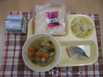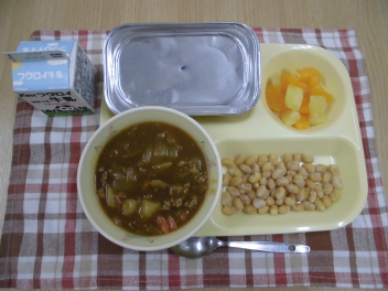今日は豚肉を使った「ポークカレー」です。カレーは、インドで生まれた料理で、インドからイギリスに伝わり、日本には明治時代にイギリスから伝わってきました。地方によっては、身近な所で多くとれる肉や魚介類を使って作られ、珍しいものでは「馬肉のカレー」や「タコのカレー」、「ほっき貝のカレー」などもあるそうです。約140年前に日本に伝わった料理ですが、今ではすっかり日本の家庭料理の一つになりました。