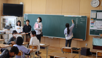 国語の授業。クラスで熱心に話し合っていました。(4-1)
