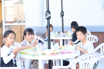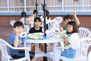 その後は、貸し切りバスでフルーツパークに向かいました。グループでお弁当を食べて、遊具で遊び、みんなで使う公園での過ごし方についても、体験を通して学んでくることができました。