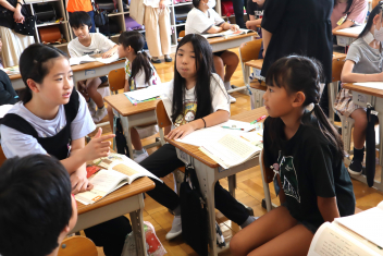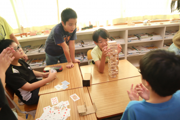 縦割りのグループで6年生が遊びを考え、異学年交流をしています。