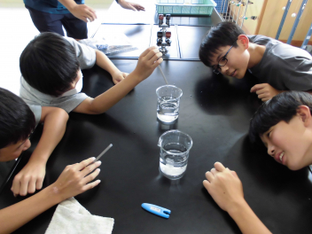 ボールが月、電灯が太陽の光、地球である自分からどのように見えるのか、班でボールの位置を変えながら実験しましたsmiley