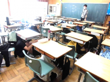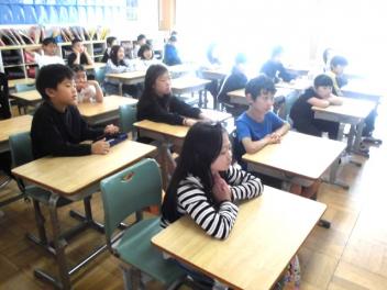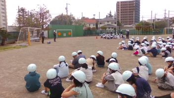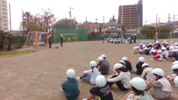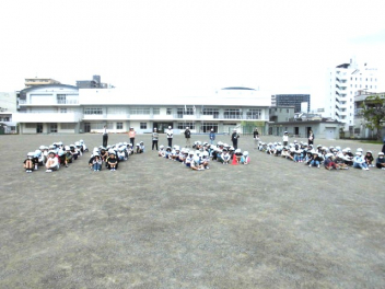 • 今年度初めての避難訓練を行いました。新しい教室からの避難経路を確認しながら、運動場に避難しました。運動場に集まった時も静かに集合でき、真剣に取り組んでいました。「押さない、走らない、しゃべらない、戻らない(おはしも)」を合言葉に、自分の命は自分で守れるように指導していきます。訓練後には各教室で、資料を用いて訓練の振り返りをしました。