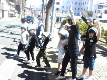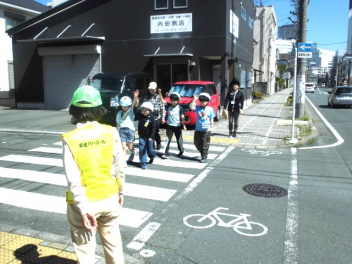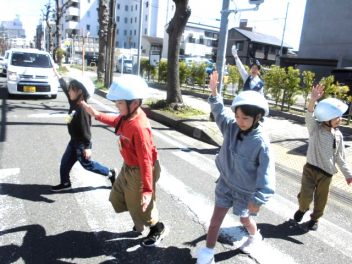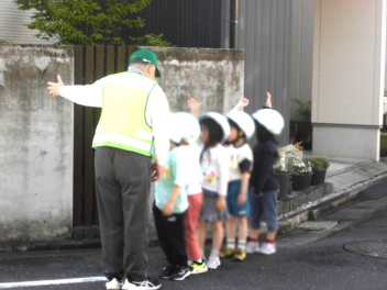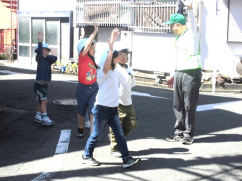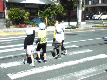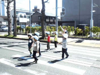 子供たちは、交通安全指導員の方による「安全な道路の歩き方」の説明を聞いた後、実際に学校周辺の道路で歩行訓練をしました。「左右をよく見て、手を挙げて横断歩道を渡る」「道路の右側を一列で歩く」など、学んだことを実践していきましょうね。