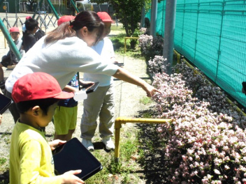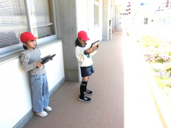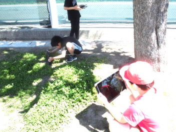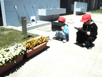2年生は生活科の学習で、3年生は理科の学習で、春の動物や植物の様子を観察するために、校庭を散策していました。2年生はビニール袋を片手に、春の植物を採集していました。3年生は、見つけた春らしい動植物を、タブレットパソコンで写真撮影していました。穏やかに流れる時間の中で、こうして自然や友達とかかわる活動は、子供たちにとって大切だと感じました。