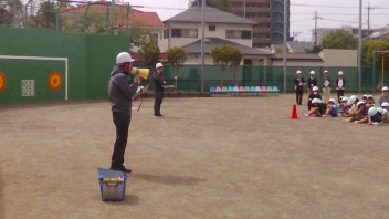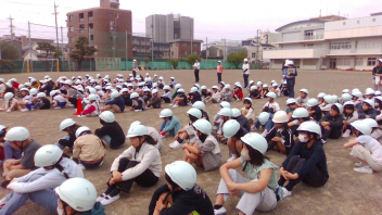 子供たちは、落ち着いて運動場に避難をすることができました。今日の訓練について、校長先生からもお話を伺いました。