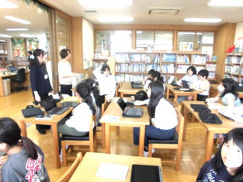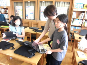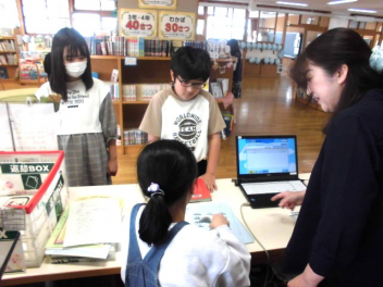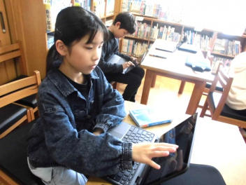 • 3校時には5年生が、図書室を利用するためのオリエンテーションを実施しました。オリエンテーションを行うと、本を借りられるようになります。子供たちはさっそく、お気に入りの本を見つけて本を借りていました。